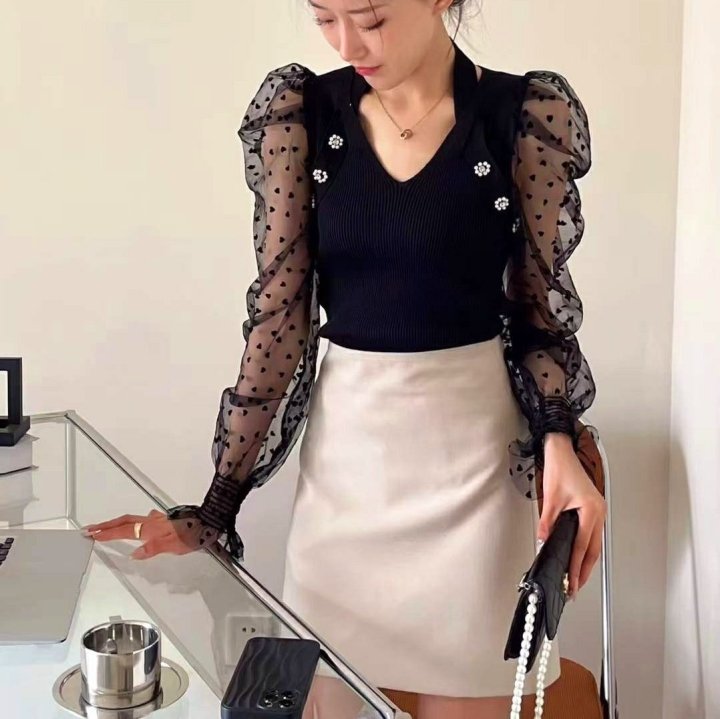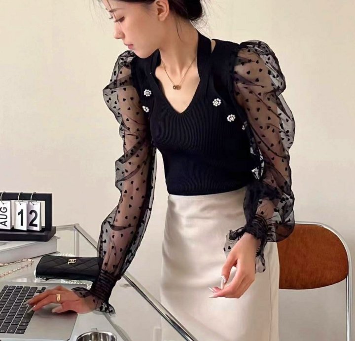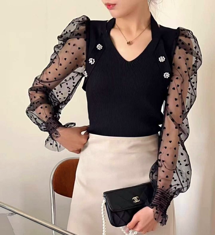 Chanel 샤넬 낸시 하트퍼프망 니트블라우스 > 의류