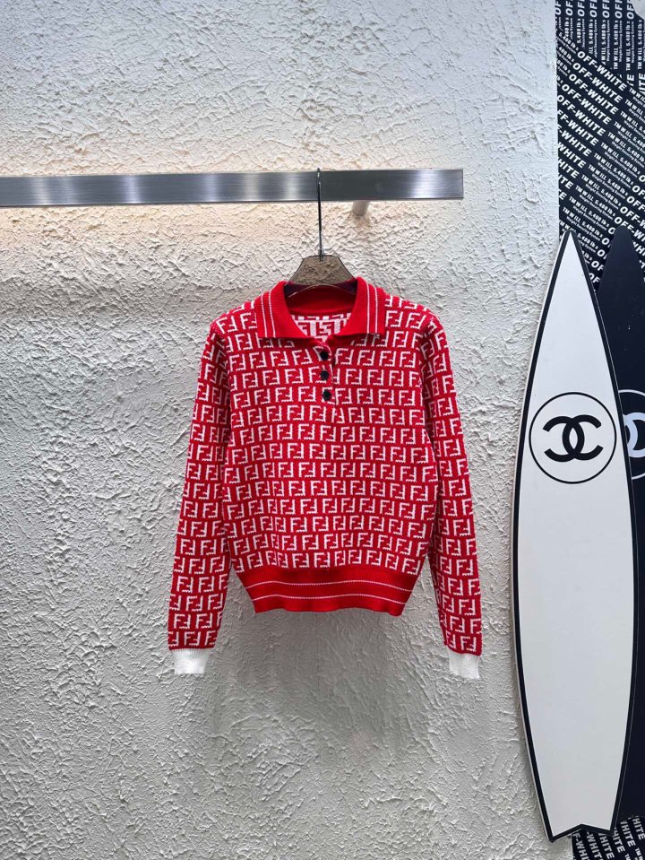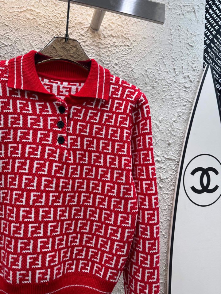 Fendi 펜디 쟈카드 풀오버 클래식 오픈카라 니트 > 의류