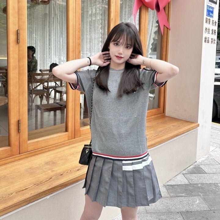 Thom Browne 톰브라운 삼선 라인 헥터 반팔 라운드 니트 > 의류