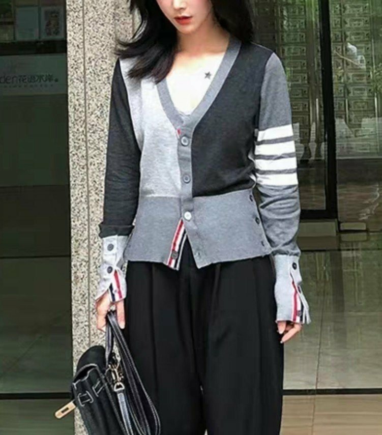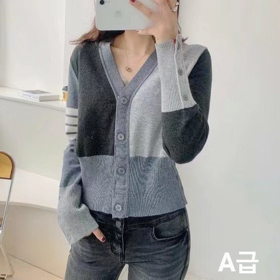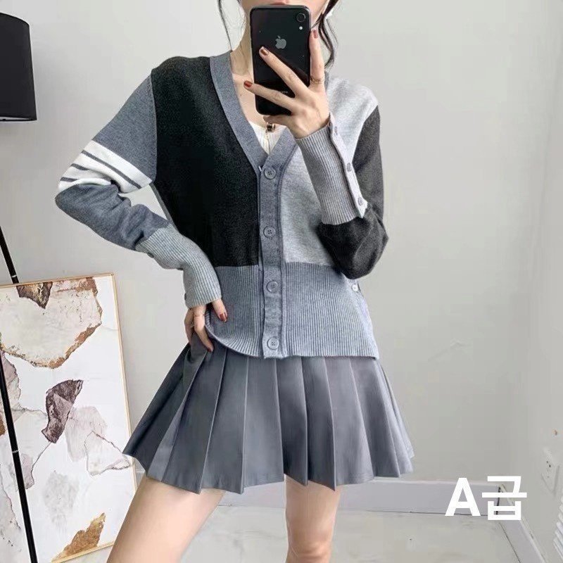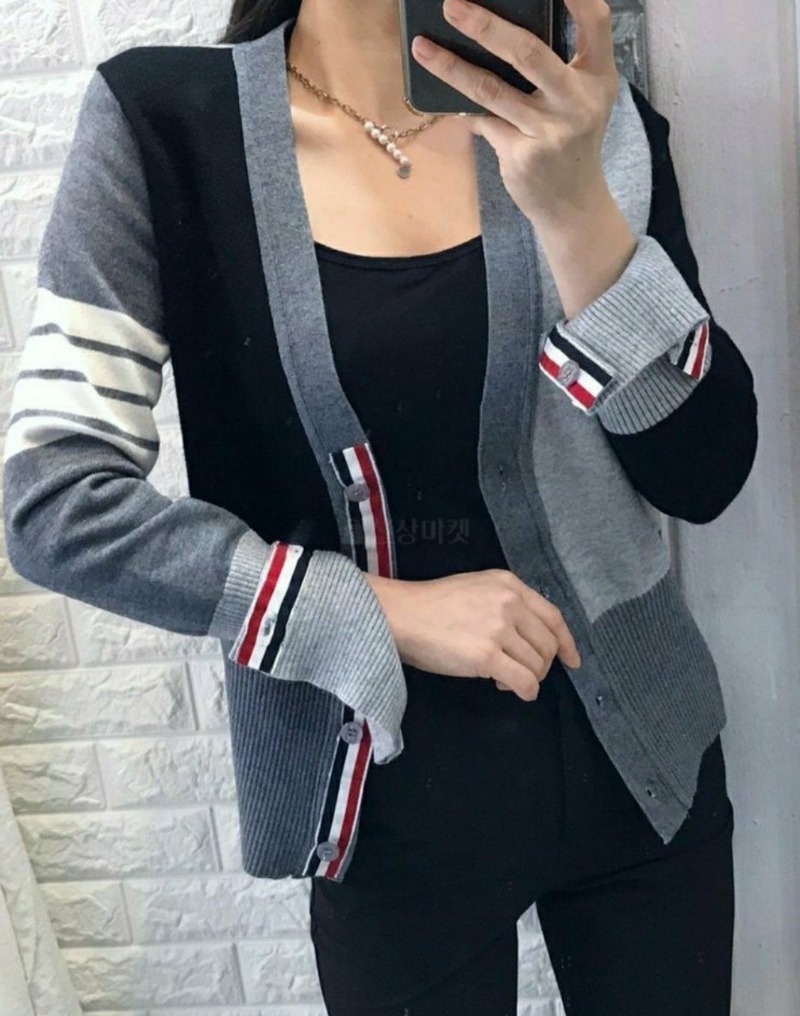 THOM BROWNE 톰브라운 배색 니트 가디건 > 의류