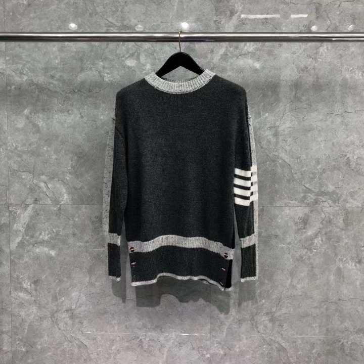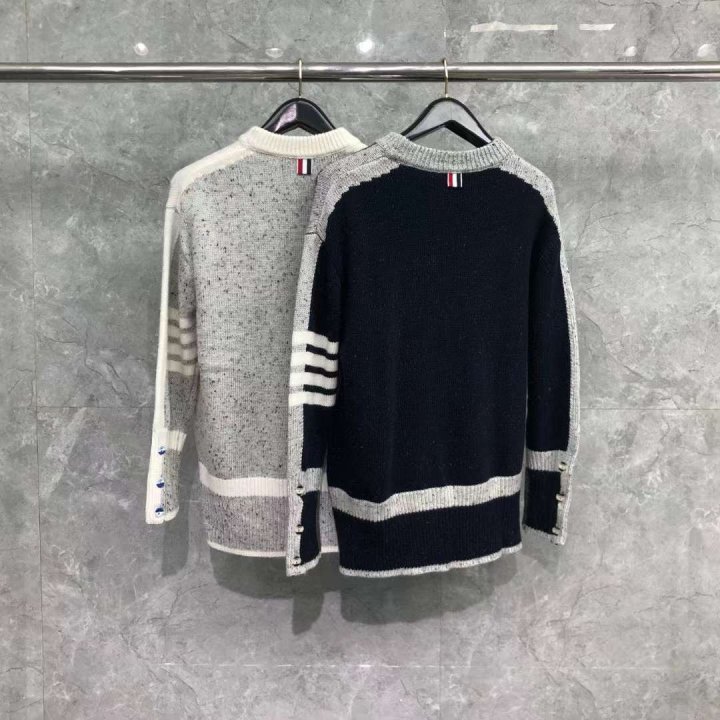 Thom Browne 톰브라운 여성 베이지 케이블 도니골 사선완장 니트 > 의류