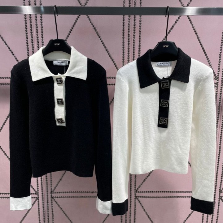 Chanel 샤넬 스퀘어버튼 오픈카라 니트 > 의류