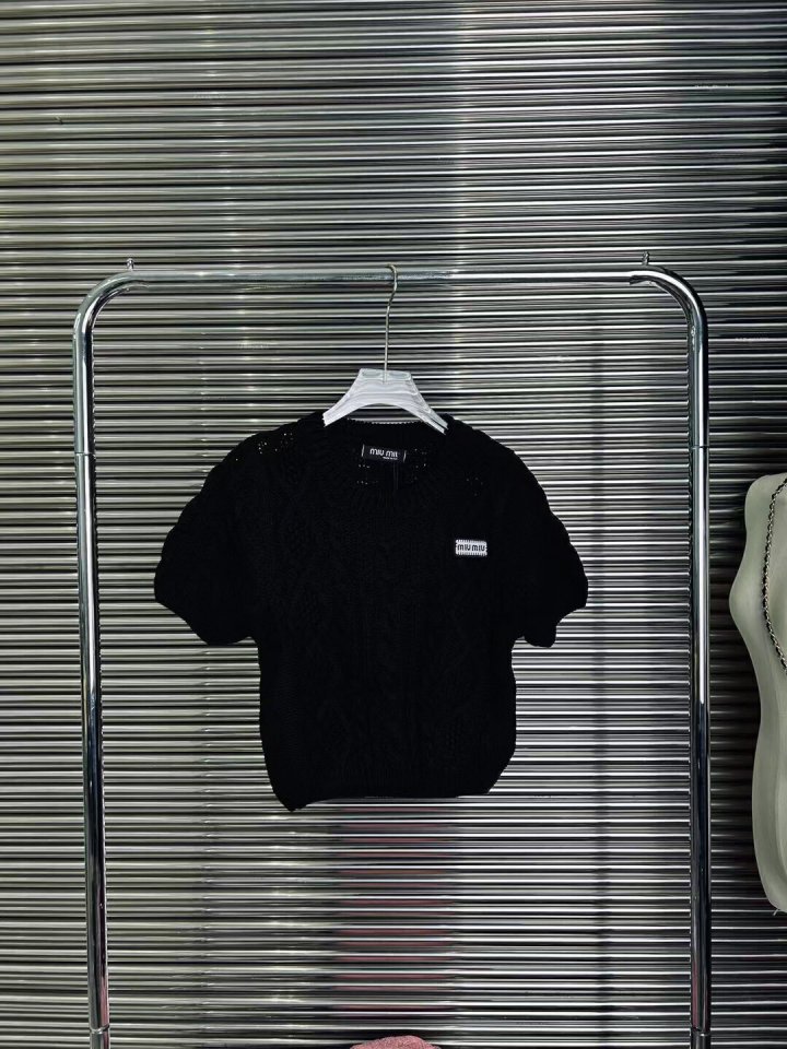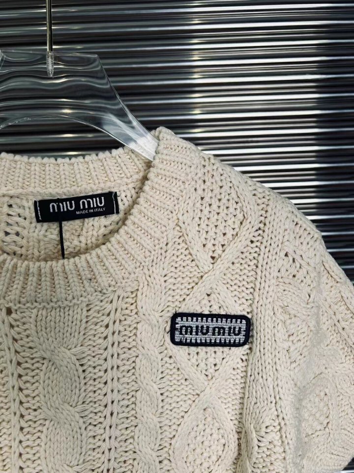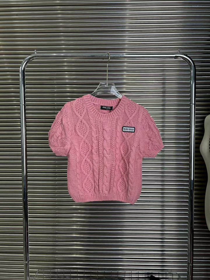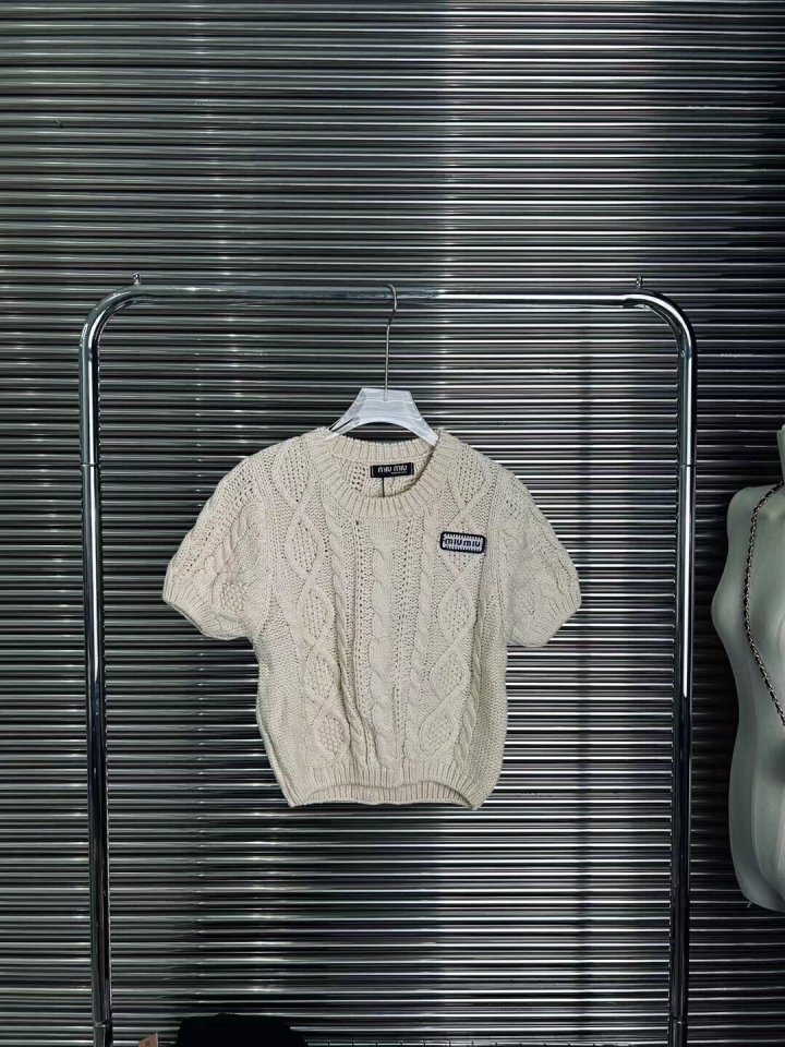 miumiu 23ss 미우미우 하이웨스트 숏 반팔 짜임니트 > 의류