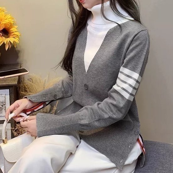 Thom Browne 톰브라운 프리미어 배색 폴라 니트 > 의류