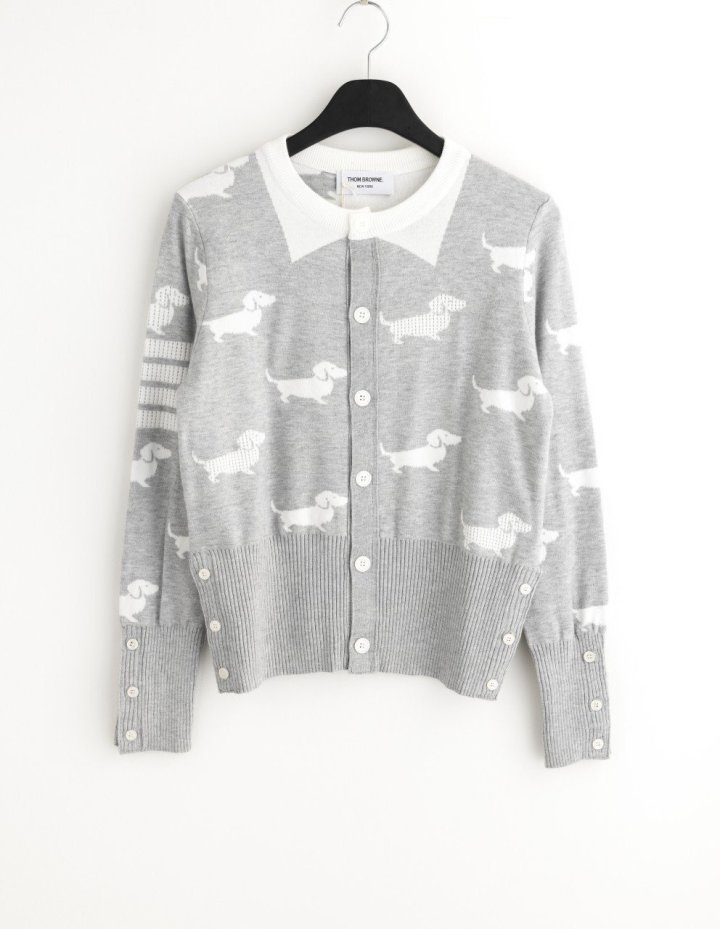 Thom Browne 톰브라운 라이트 그레이 인타르시아 4-바 크루넥 가디건 > 의류