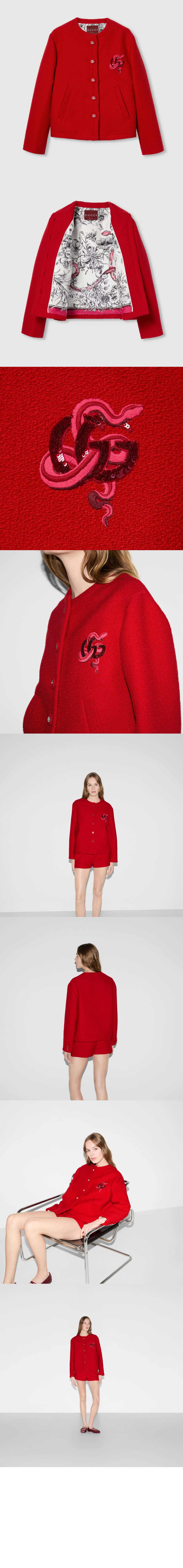 구찌 자수 울 재킷