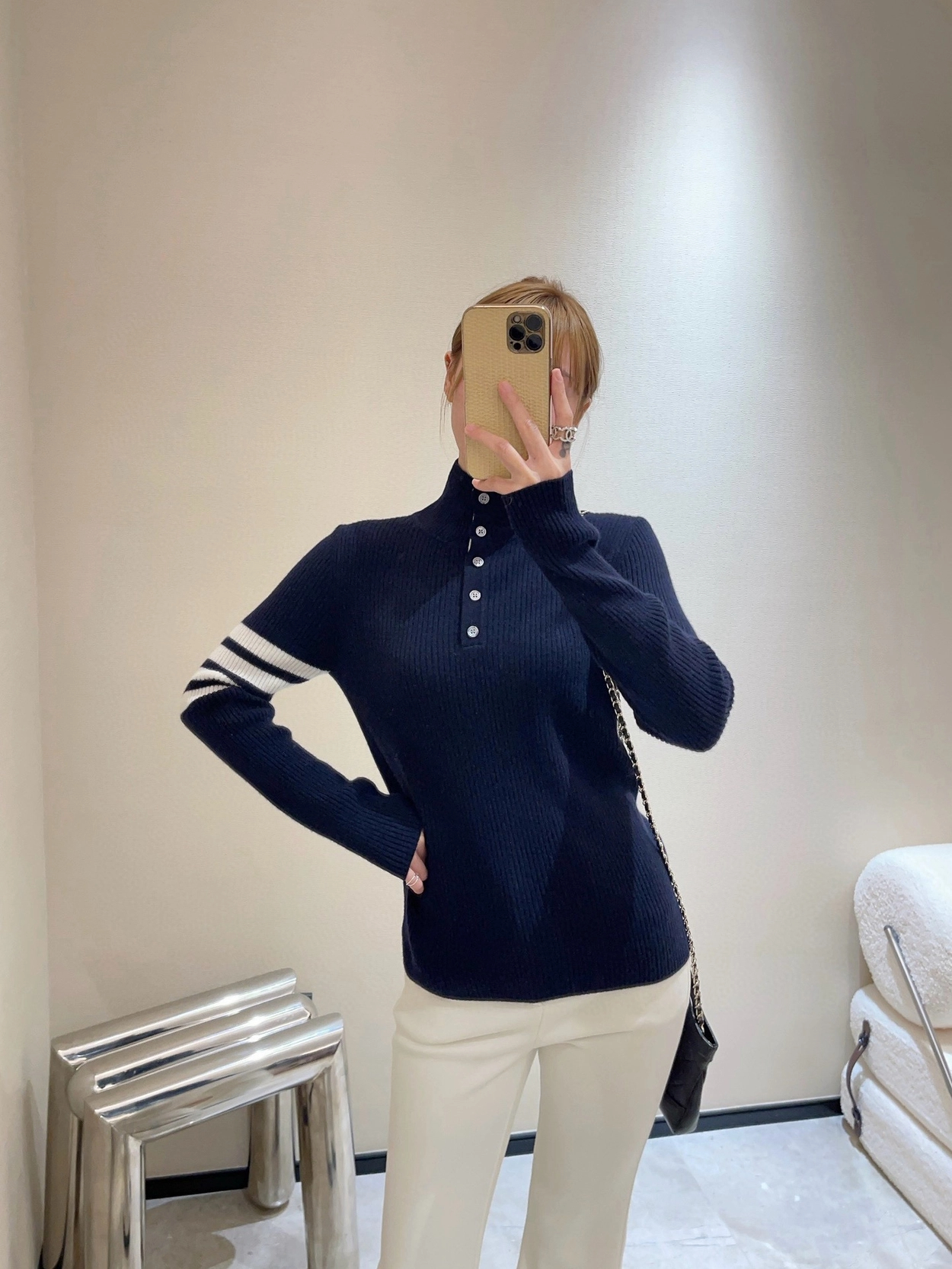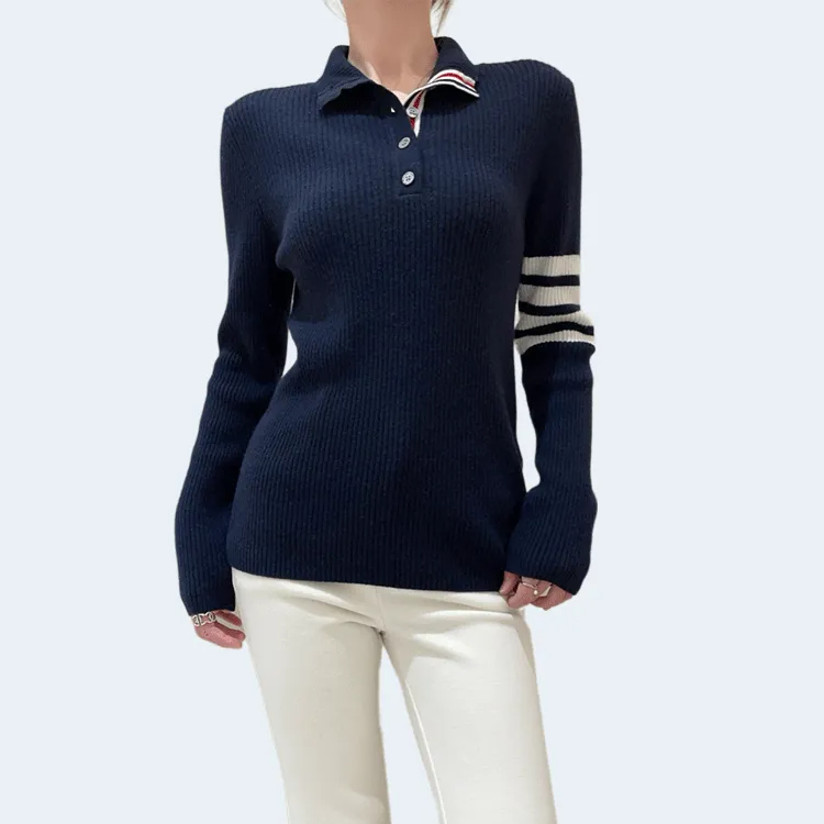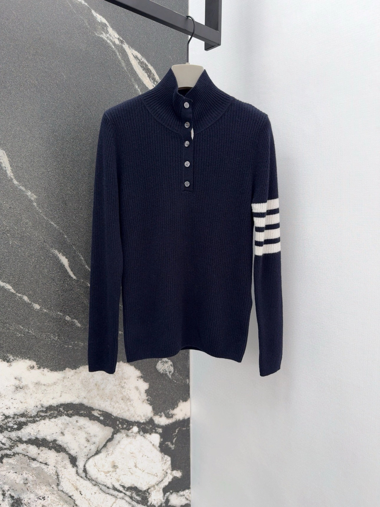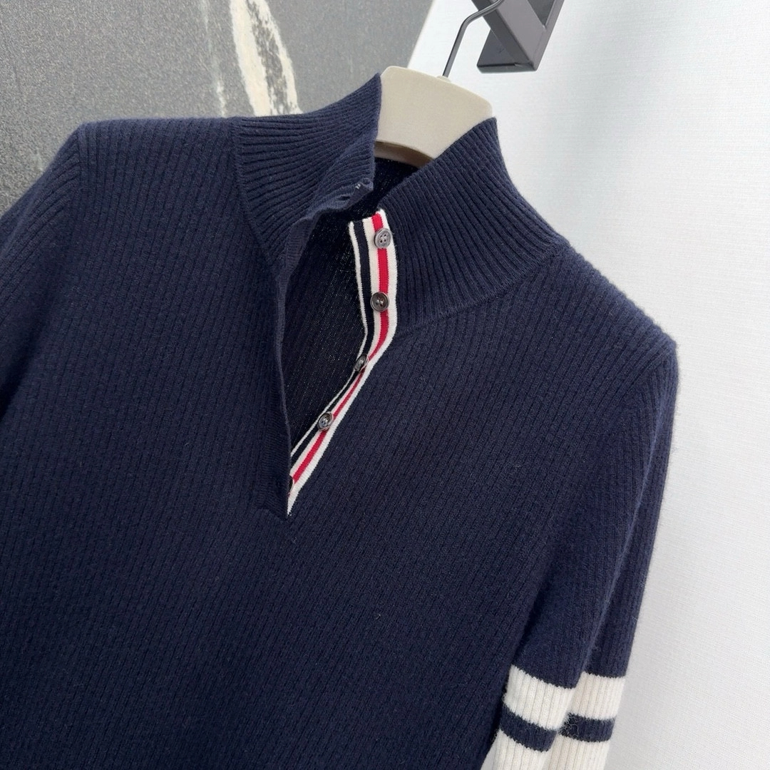 톰브라운 스트라이프 골지 니트 네이비