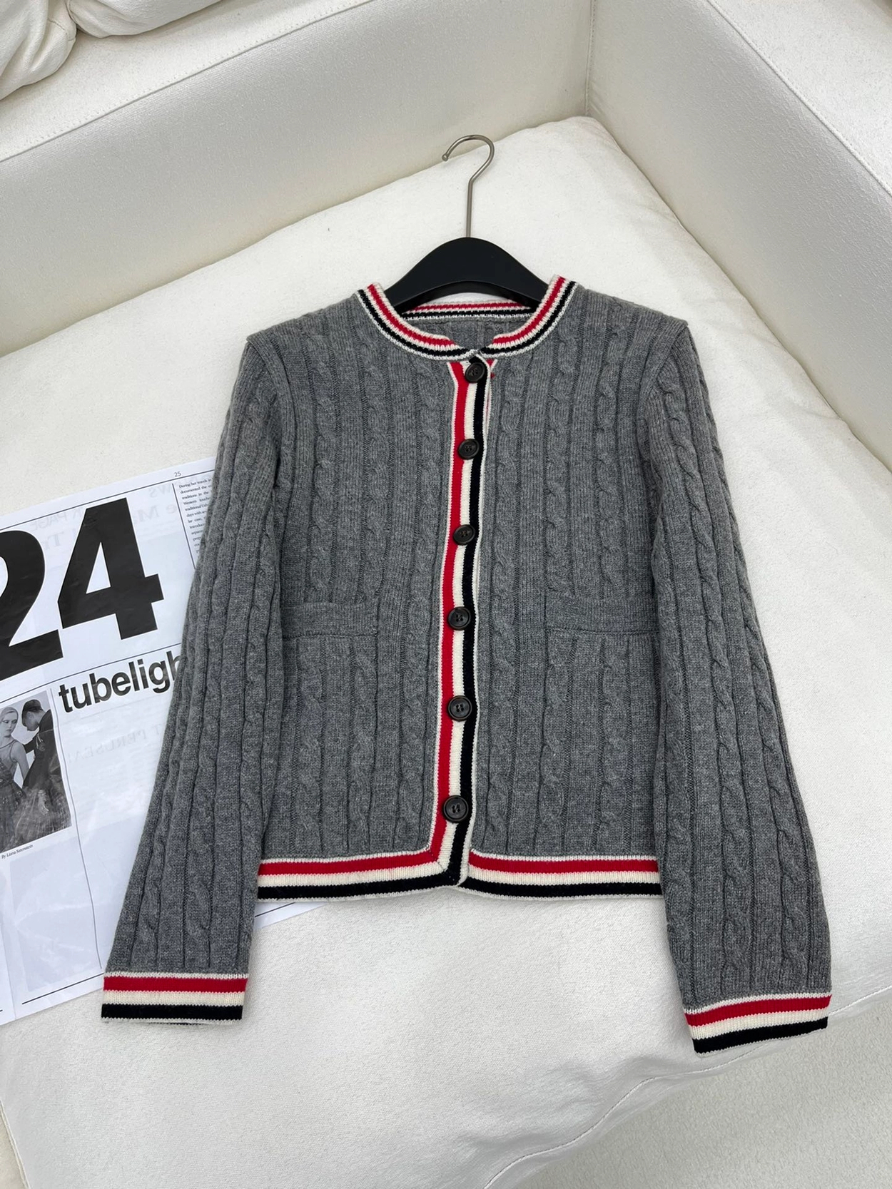 톰브라운 케이블 스티치 보일 울 가디건 > 의류