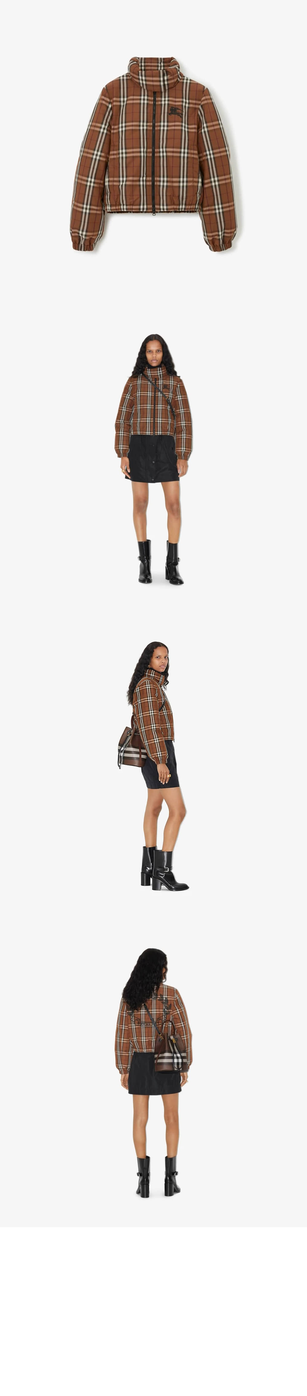버버리 크롭 체크 나일론 푸퍼 자켓 80740341