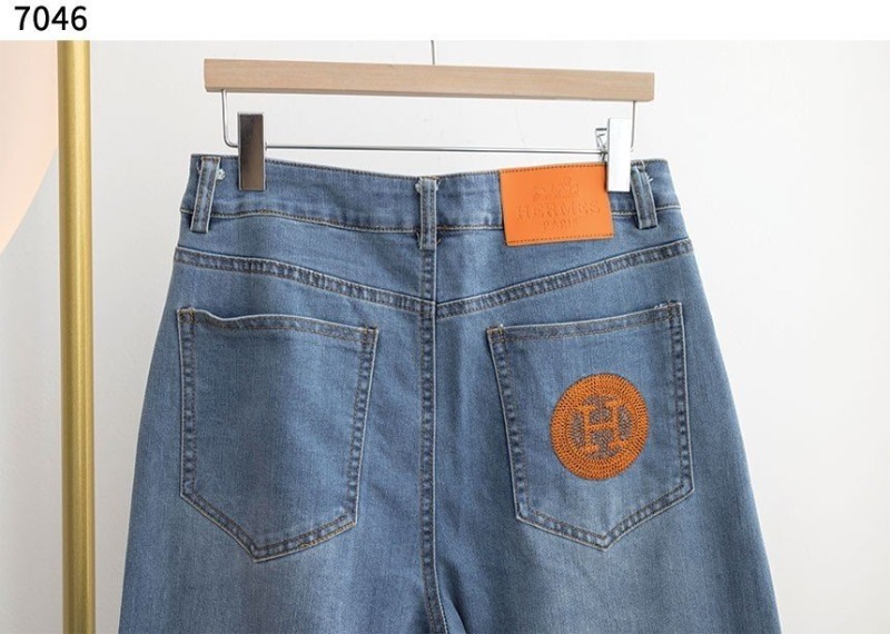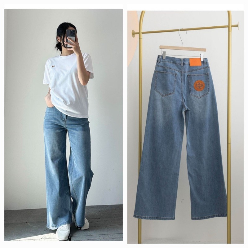 HERMES 에르메스 오렌지 로고 코튼 데님 팬츠 > 의류