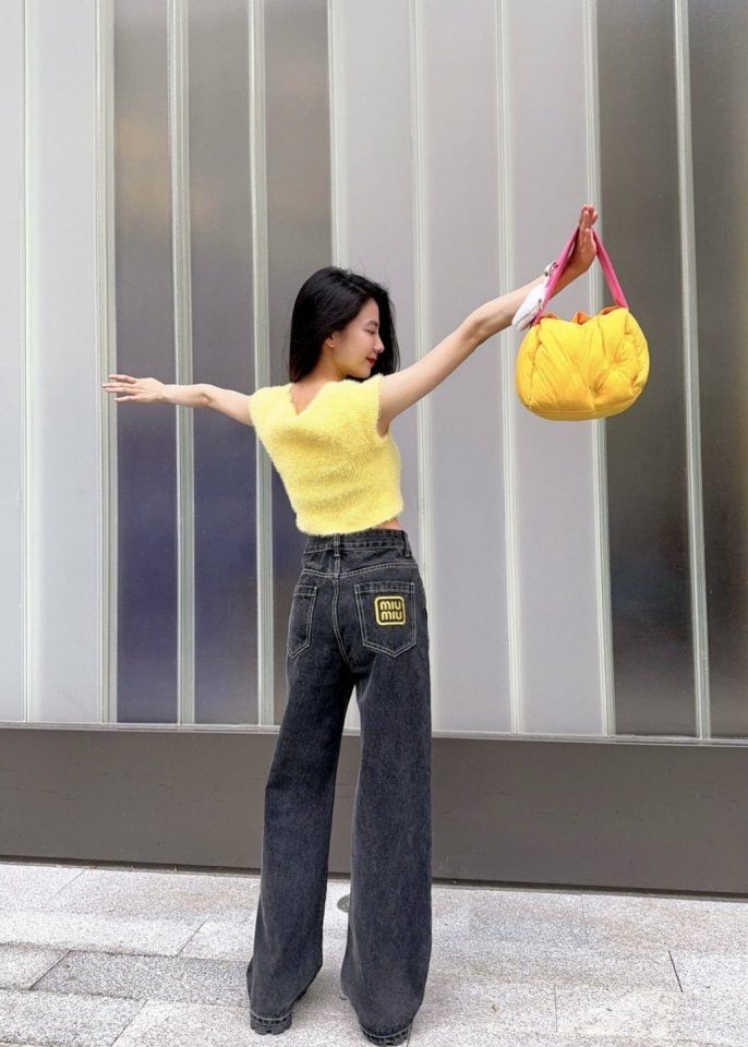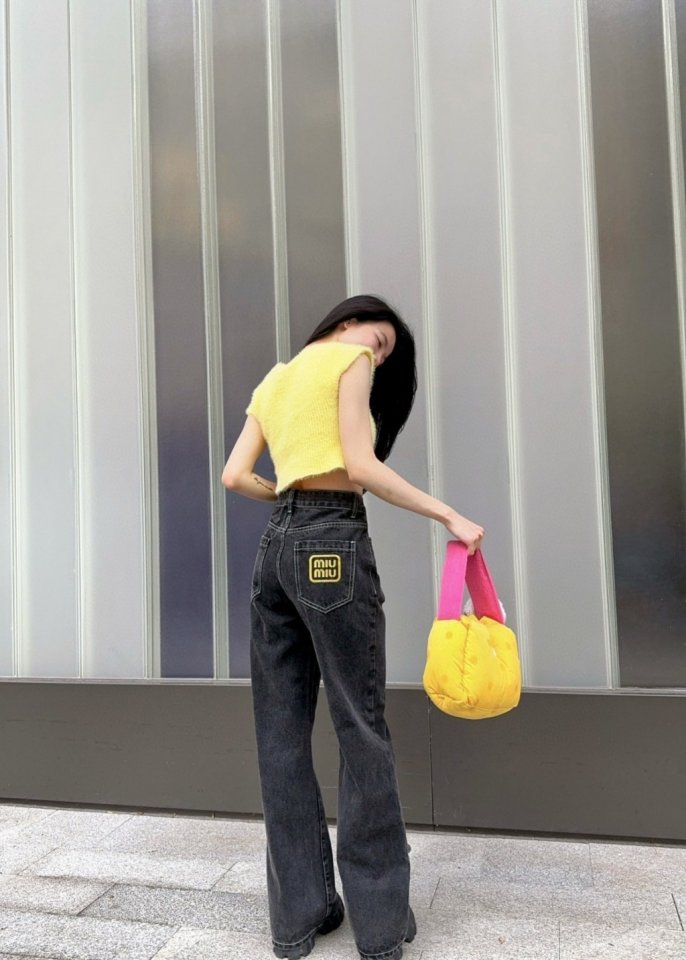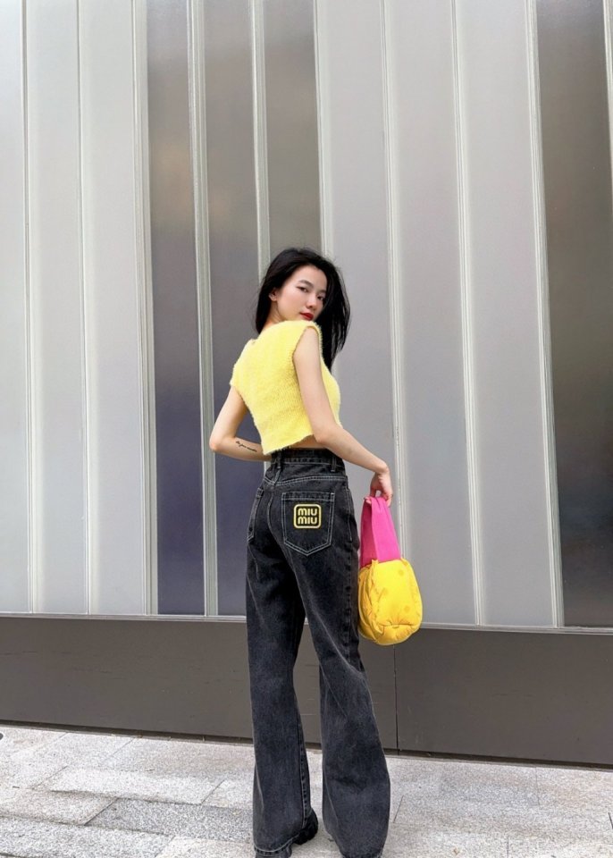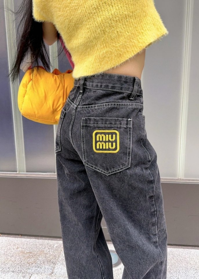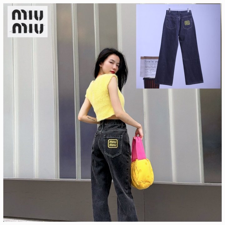 MIUMIU 미우미우 23SS 자수 로고 스트레이트진 > 의류