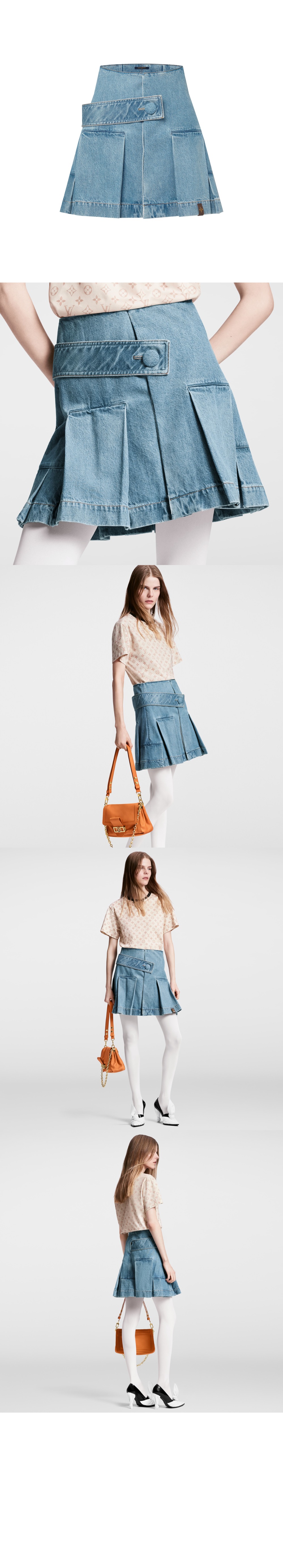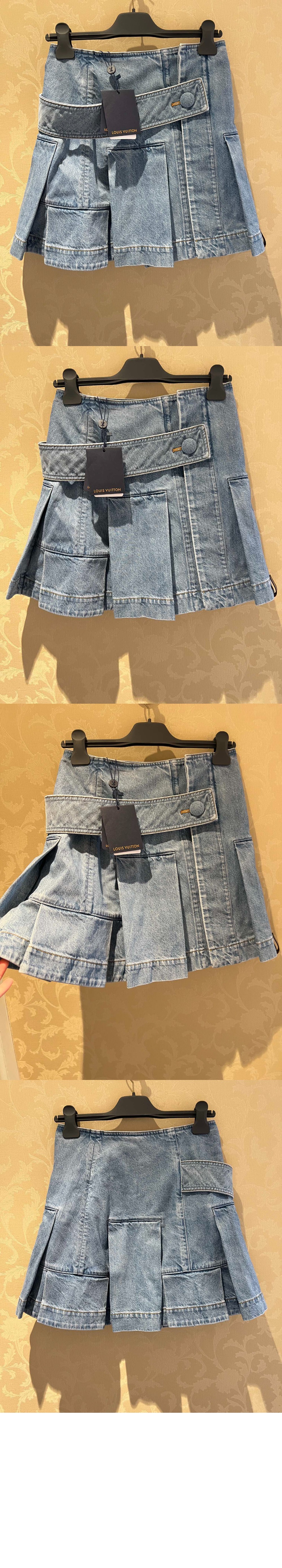 루이비통 데님 버튼 탭 플리츠 스커트 1AFLXO