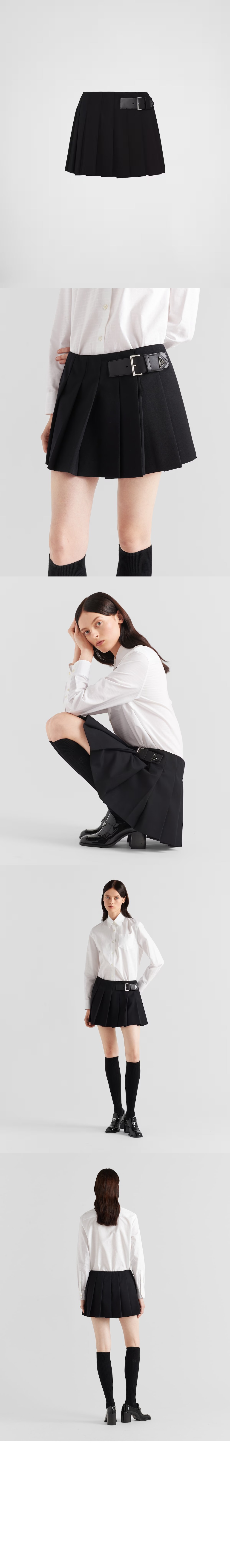 프라다 가죽 벨트 트윌 미니스커트 P123UE