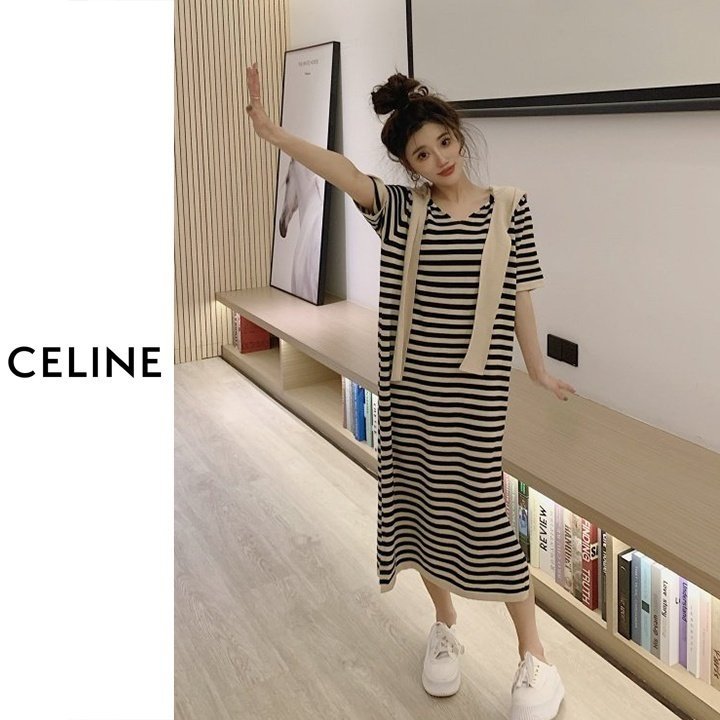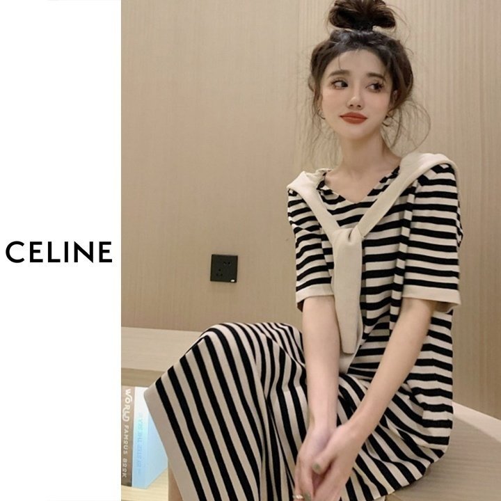 CELINE 셀린느 스트라이프 후드숄 원피스 > 의류
