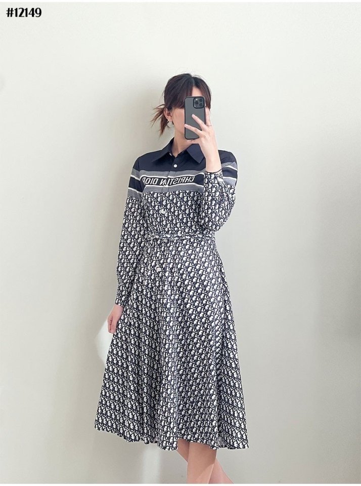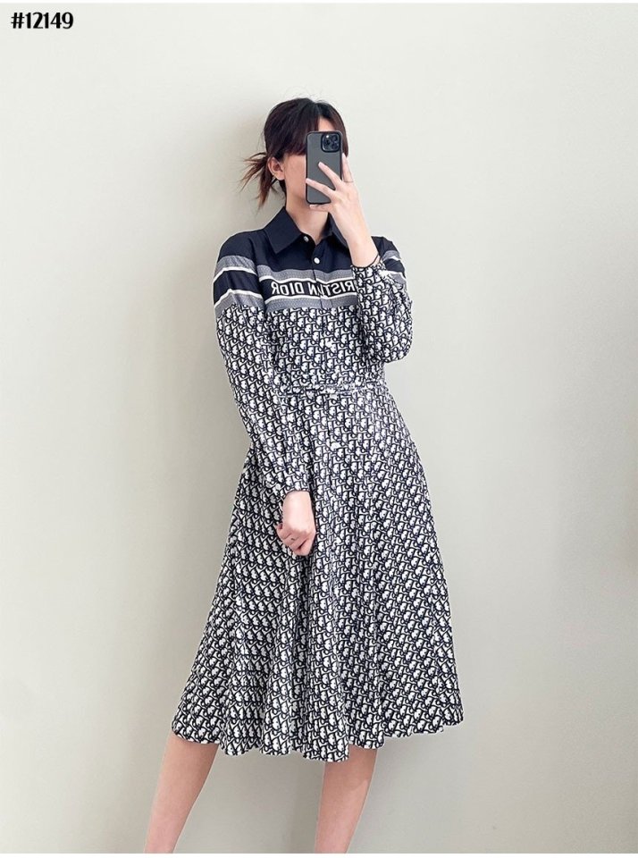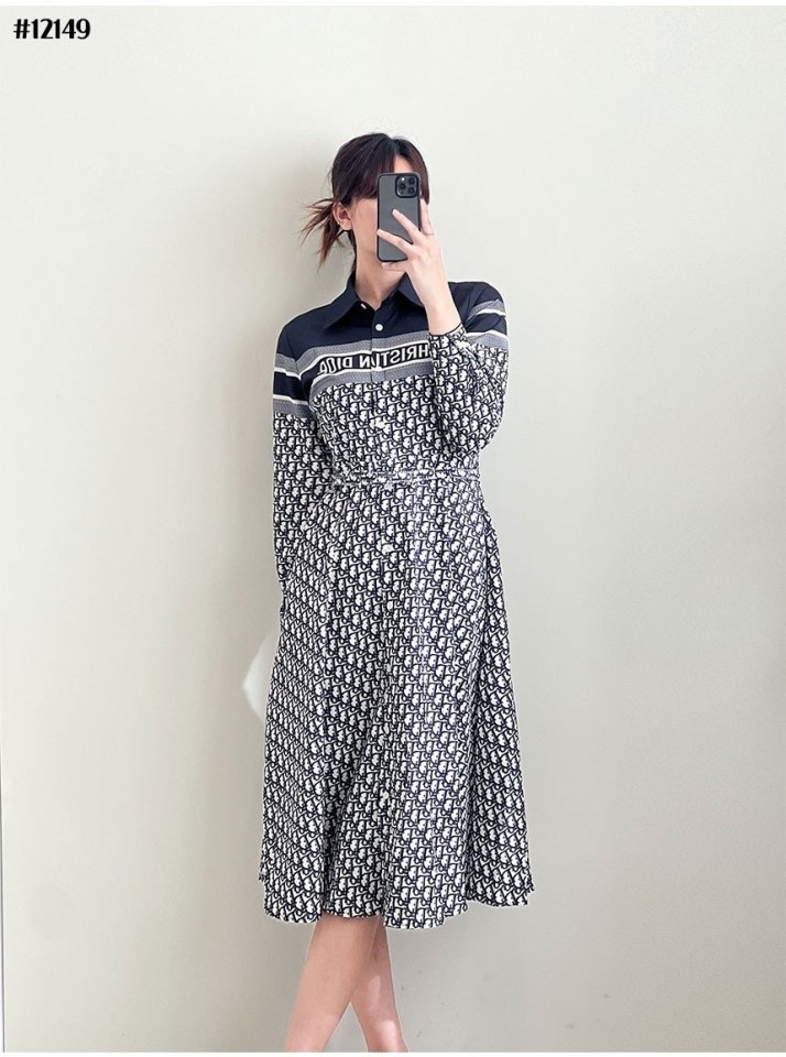 [DIOR 크리스찬 디올 여성 오블리크 벨티드 카라 플레어 원피스 > 의류