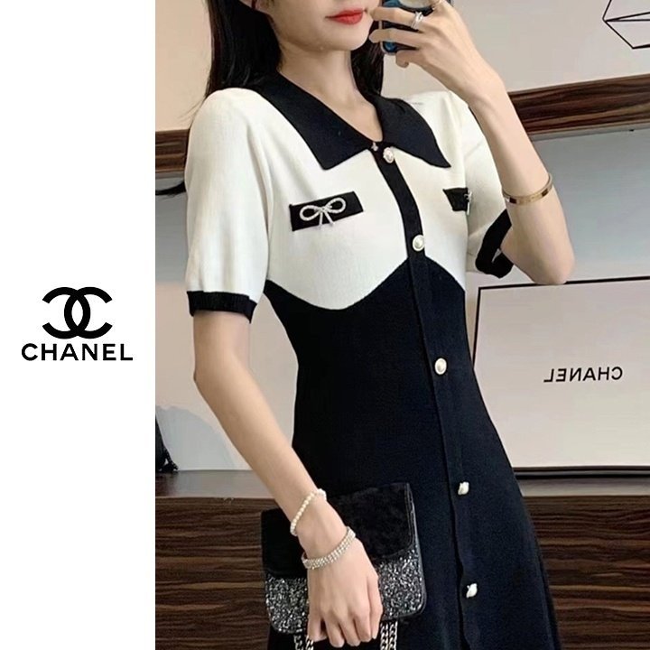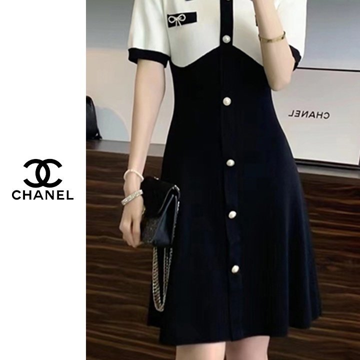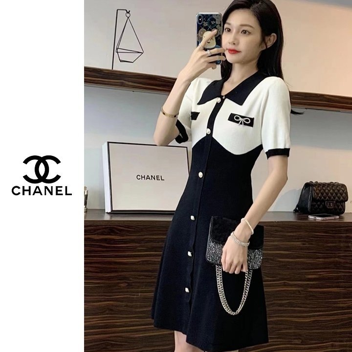 Chanel 샤넬 이중배색 진주버튼 원피스 > 의류