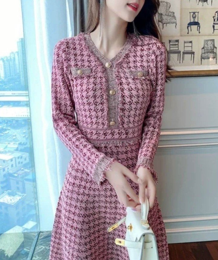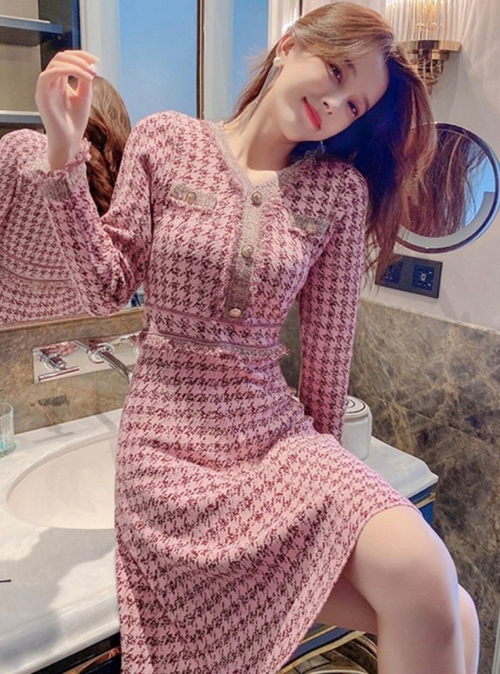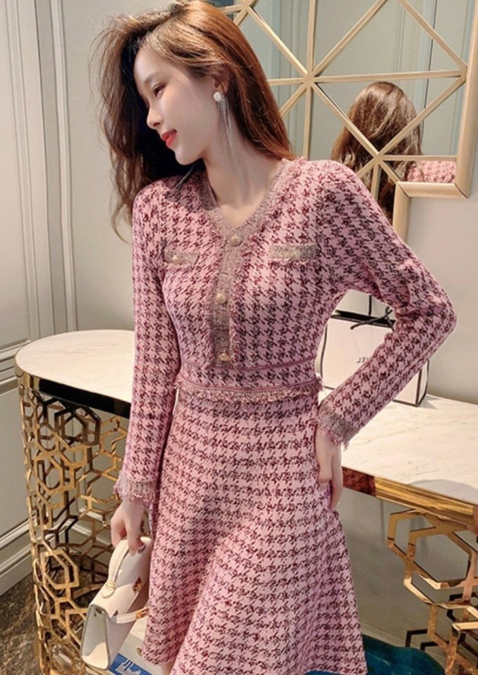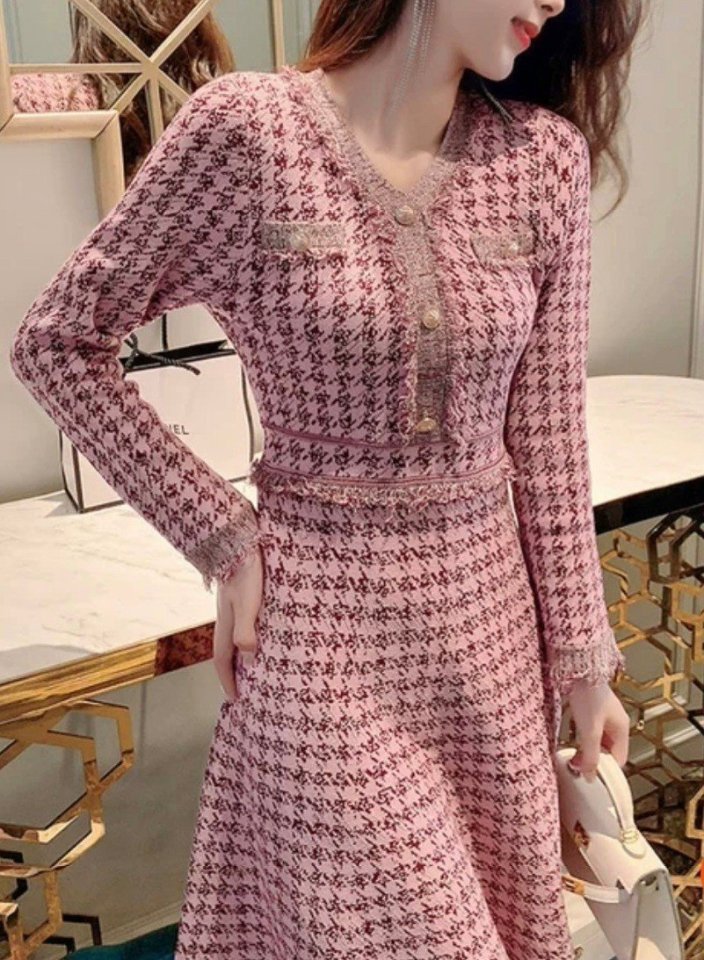 Chanel 샤넬 하운즈 핑크 니트 원피스 > 의류