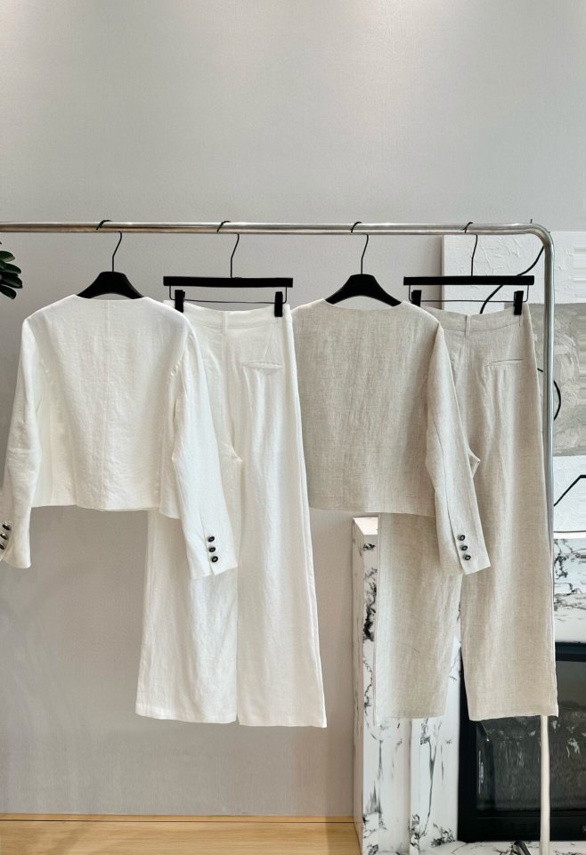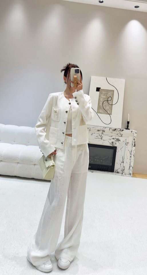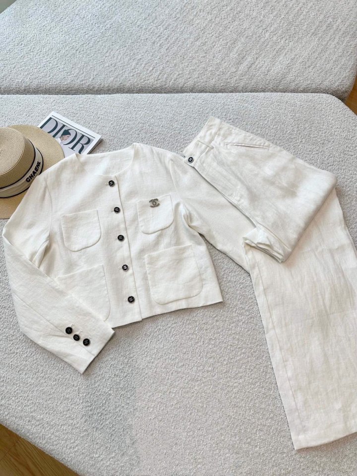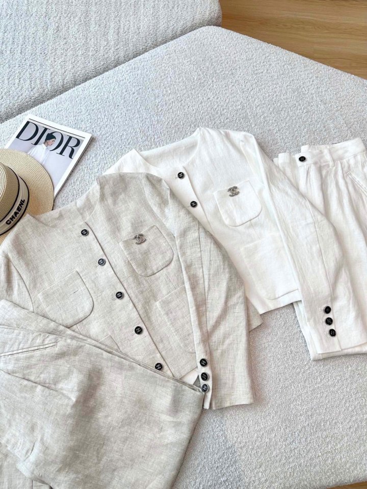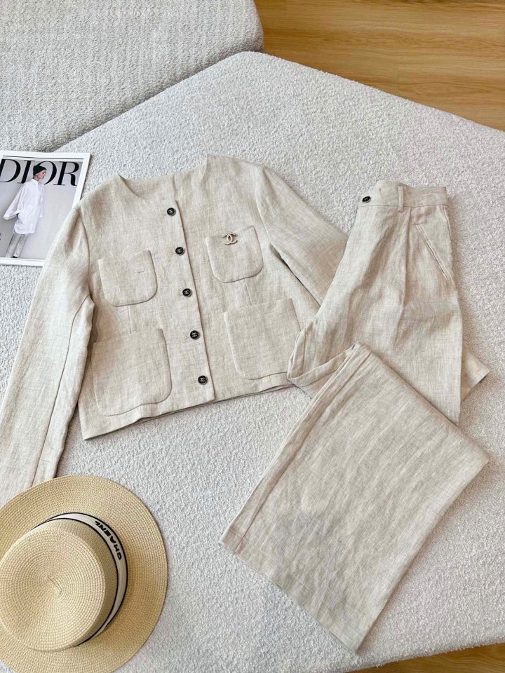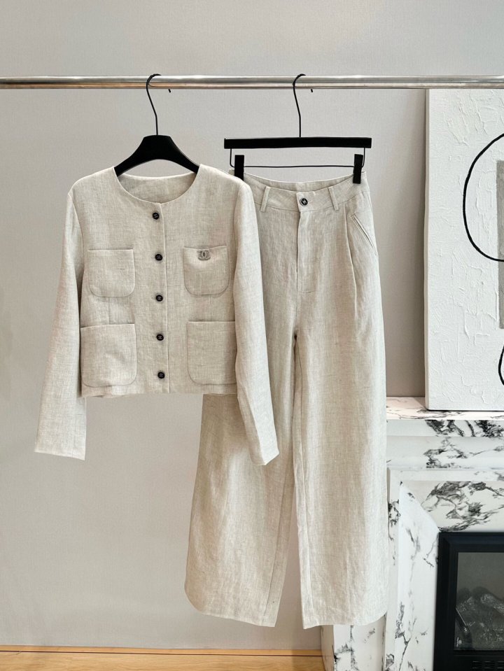Chanel 샤넬 루즈 린넨 셋업 자켓+팬츠 세트 > 의류