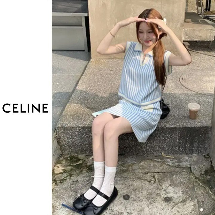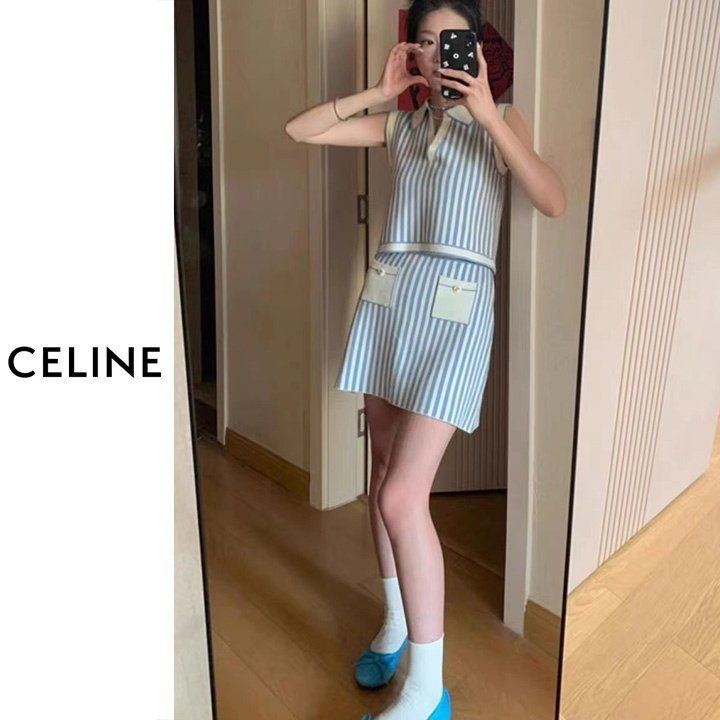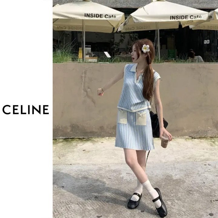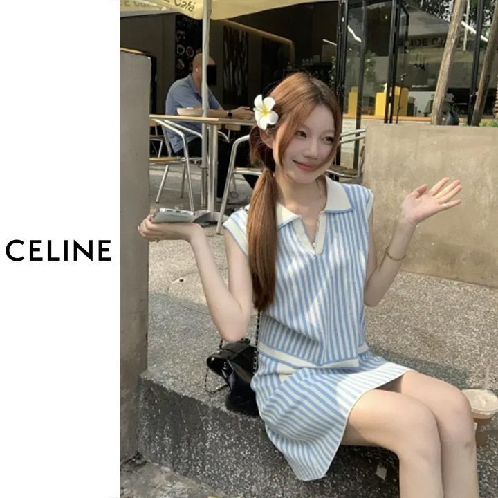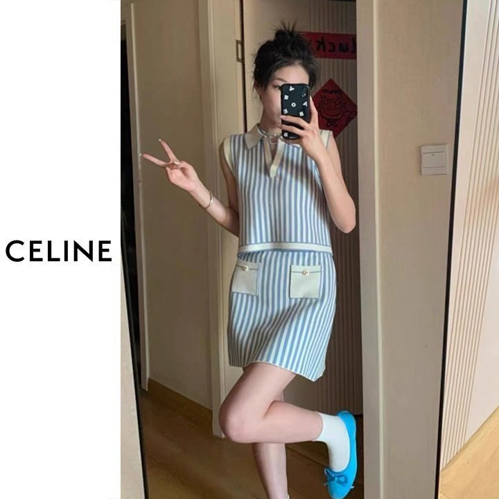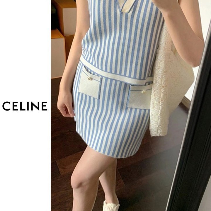 CELINE 셀린느 스트라이프 민소매 투피스세트 > 의류