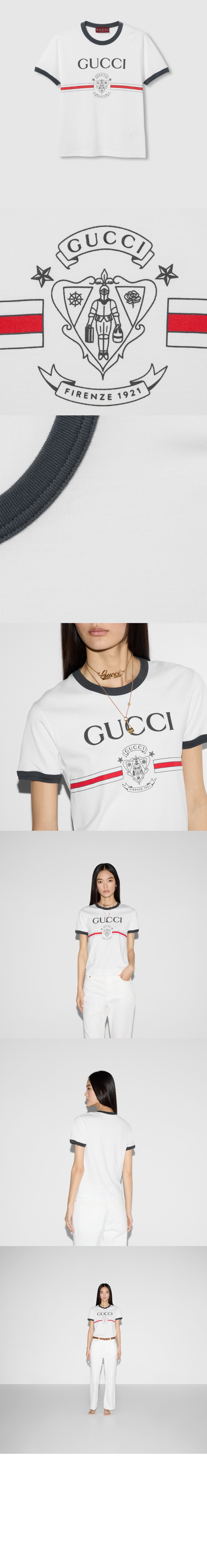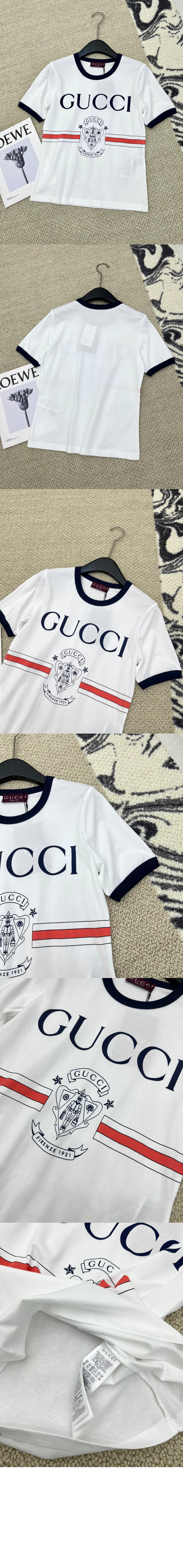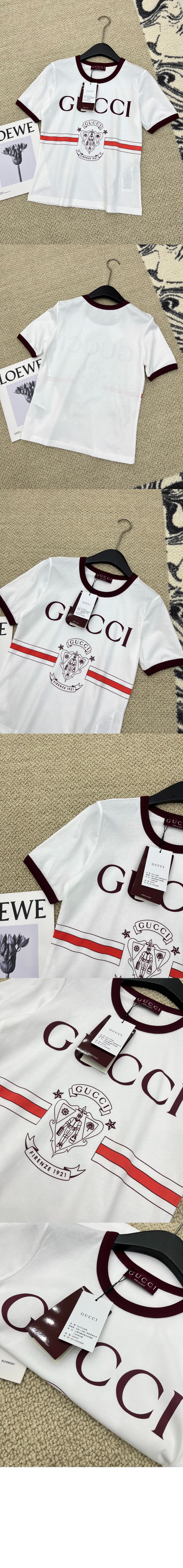 구찌 프린트 화이트 코튼 티셔츠 616036
